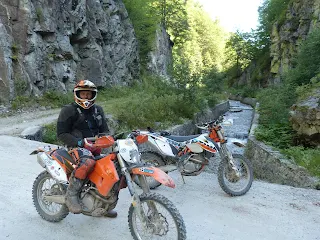 The dirt road goes for miles and miles along the lake and then into the head of the valley and goes all the way to Pestosani. We followed the TET route all the way on this winding road through the forest until it started to head down back towards civilisation. There are a few farms and logging sites along the way but much else. We disturbed a couple of buzzards that literally took off just in front of us today – a beautiful sight.